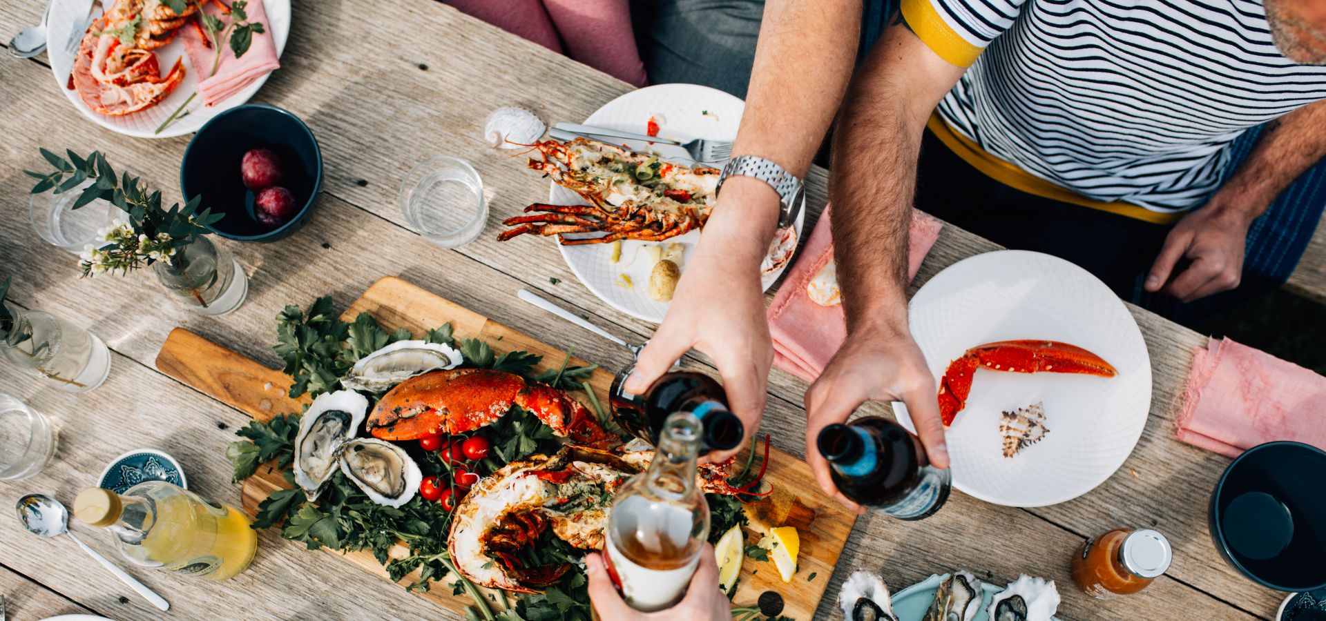 Während Sie an unseren Ufern sind, verpassen Sie nicht, die „Big Four“ von Jersey zu erleben. Halten Sie Ausschau nach Austern, Hummer, Jersey Royals und unseren berühmten Milchprodukten, während Sie die Insel erkunden. So bekommen Sie einen echten Eindruck von Jersey! Holen Sie sich bei einem Spaziergang an der frischen Seeluft einen gesunden Appetit. Von unserer Esskultur am Strand bis zu unseren preisgekrönten Restaurants ist unser Essen etwas Besonderes, es ist gekocht mit viel Herz und nährt die Seele.