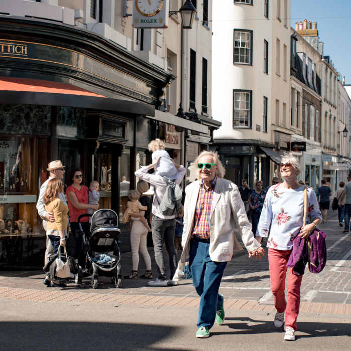 Einkaufen auf Jersey ist wie nirgendwo sonst auf der Welt. Genießen Sie Top-Marken, Designer-Mode, Kaufhäuser, lokale Märkte, stilvolle Boutiquen und mehrwertsteuerfreies Einkaufen im Herzen von St. Helier. Schlendern Sie durch charmante Hofläden, urige Antiquitätengeschäfte und einzigartige Läden in den kleinen Orten überall auf der Insel. Genießen Sie es, versteckte Ecken und neue Viertel zu entdecken? Da in unseren Ortschaften alles leicht zu Fuß zu erreichen ist, müssen Sie nicht bis zum Umfallen einkaufen – es gibt genügend Orte, an denen Sie sich unterwegs erfrischen und entspannen können. Gönnen Sie sich eine kleine Pause in einem der Cafés mit einem schnellen Espresso oder genießen Sie ein Glas Wein bei einem entspannten Mittagessen.