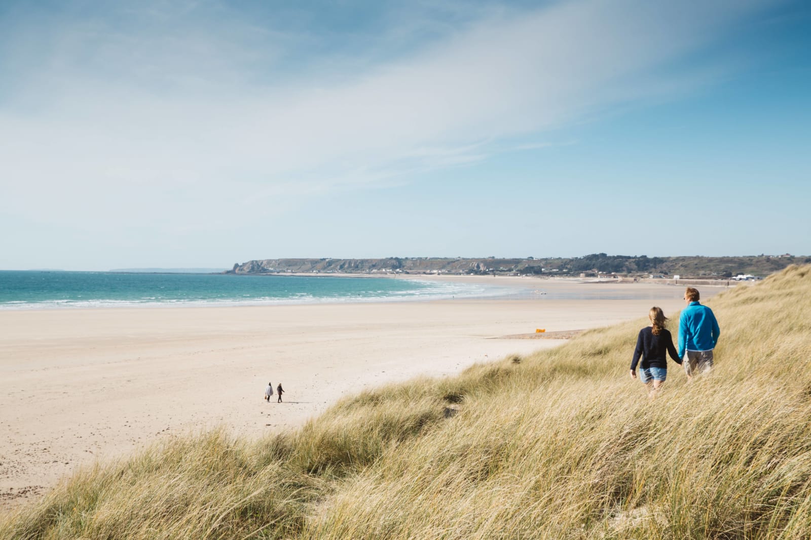 Hoch oben von den Klippenpfaden bieten sich Ihnen traumhafte Ausblicke auf die bunte Farbenpracht der Insel. Halten Sie inne, um an klaren Tagen den Blick nach Frankreich auf sich wirken zu lassen, und atmen Sie tief durch in der frischen Seeluft – es wird Ihnen Appetit machen auf ein ordentliches Lunch in einem gemütlichen Pub am Wegesrand. Wir empfehlen einen Abstecher ins Mourier Valley mit malerischem Blick aufs Meer oder spazieren Sie entlang der Küste von Plémont und lassen sich den Wind um die Nase wehen.