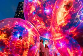 Butterfield Public Art Series: Bubbletecture by Atelier Sisu. A playful, family-fun experience in the form of a large-scale installation of iridescent, inflatable sculptures.