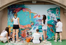 Art in the Arches returns to St Helier’s Elizabeth Marina for its second edition, bringing bold colour, creativity and community voices to this much-loved public space. Curated by Jacqueline Rutter the project invites Islanders and visitors alike to experience 12 new murals responding to the evocative theme, Out of the Blue.